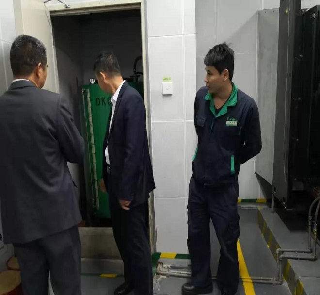 常安物業(yè)負(fù)責(zé)人分享企業(yè)綠色物業(yè)管理理念 參觀學(xué)習(xí)電機(jī)房 參觀學(xué)習(xí)雨水集蓄機(jī)房