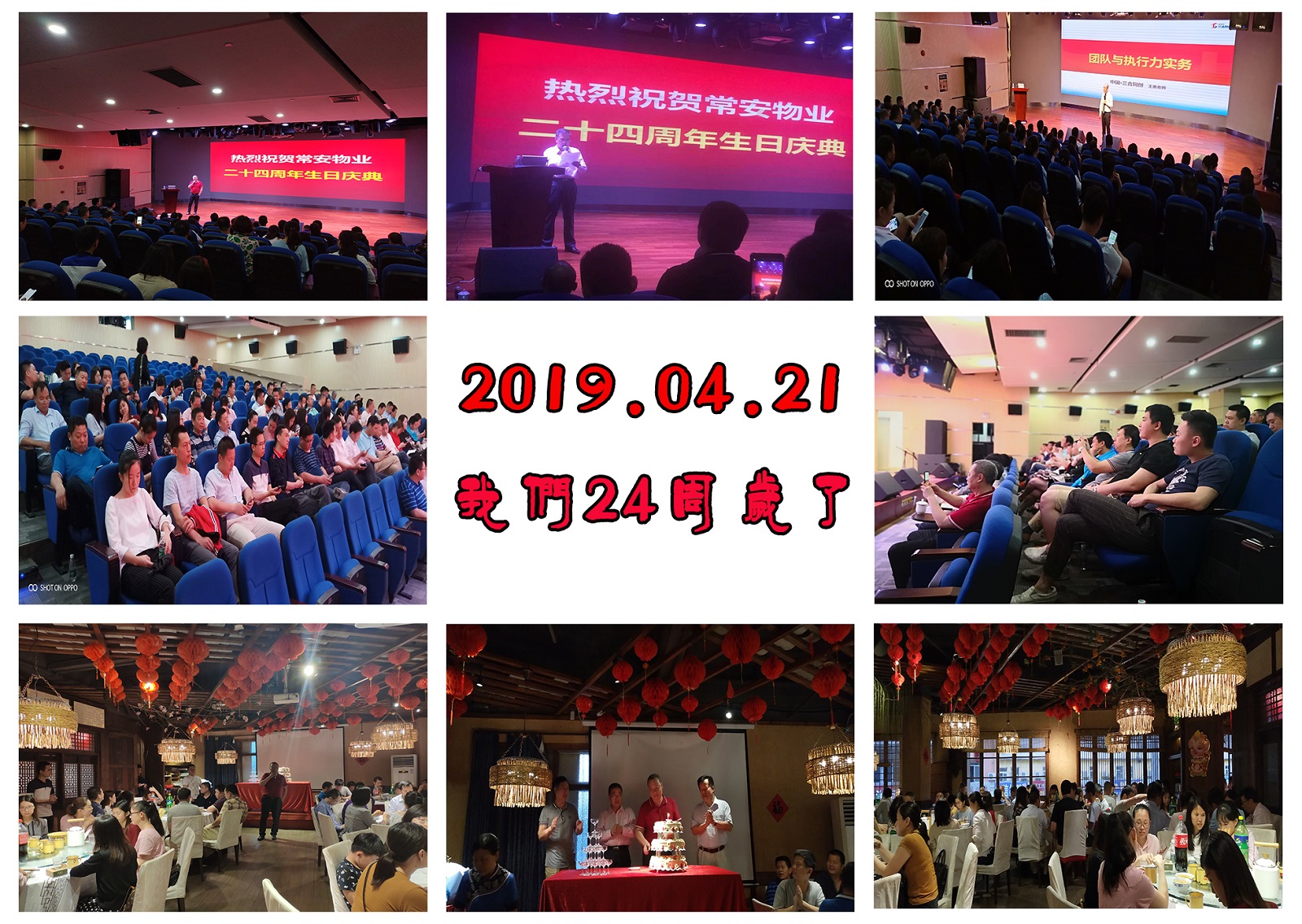 2019年4月21日,我司組織各部門、各服務中心、分公司的管理人員參加了慶祝常安物業(yè)公司成立二十四周年的慶典活動。